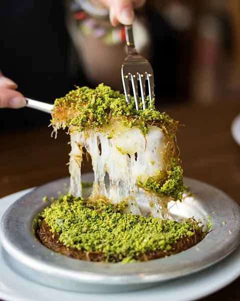 - The Stretch: When you pull a piece with your fork, the melted cheese should stretch into long, delicious strands. This is the hallmark of a good Künefe.